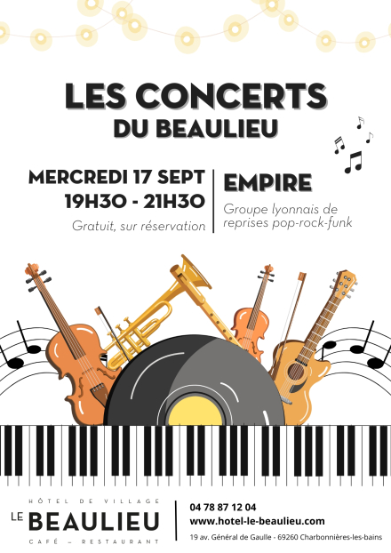 Depuis plusieurs années, Le Beaulieu propose des concerts gratuits en plein air tous les jeudis de juin et juillet sur sa grande terrasse. Un rendez-vous musical devenu incontournable dans le quartier, alliant musique live, ambiance estivale et convivialité. Rejoignez-nous également pour nos afterworks musicaux, nos soirées cocktails ou encore nos dj sets !