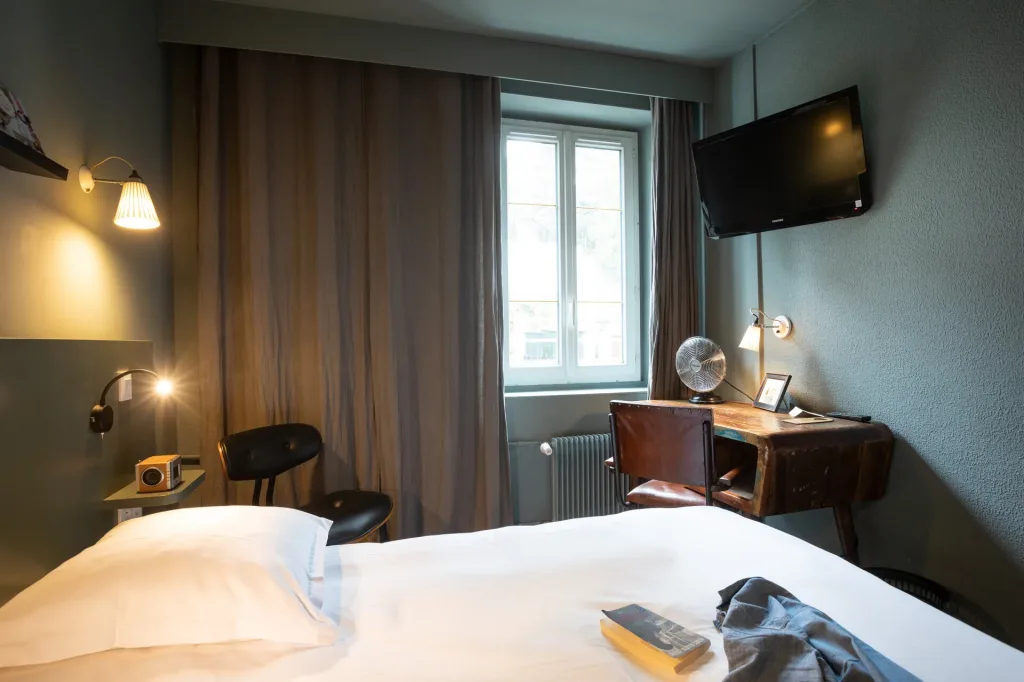 Profitez d’une literie neuve et confortable, de la bibliothèque à votre disposition qui propose des ouvrages de qualité (chaque chambre a une sélection de livres différente).